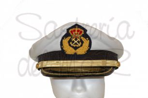Gorra de plato para lucir junto a su uniforme , fabricada a medida y con el escudo en el frontal de Capitán de Yate bordado a mano. Con galón dorado en la visera y además tienen funda extraíble para su posterior lavado