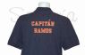 Polo alta calidad color azul con escudo de Capitan de Yate bordado en el pecho y en la espalda gran bordado con su título y nombre que elija con letras bicolores.